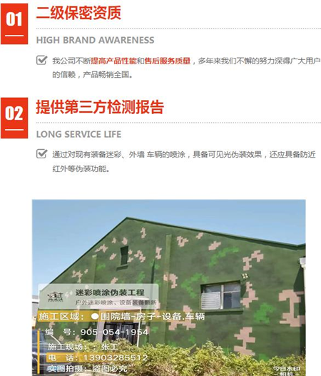 多年經驗偽裝波段范圍:可見光(380nm~760nm)和近紅外(760nm~1200nm); 外墻迷彩漆不是水漆。盡管水漆是一種環保型的涂料,;